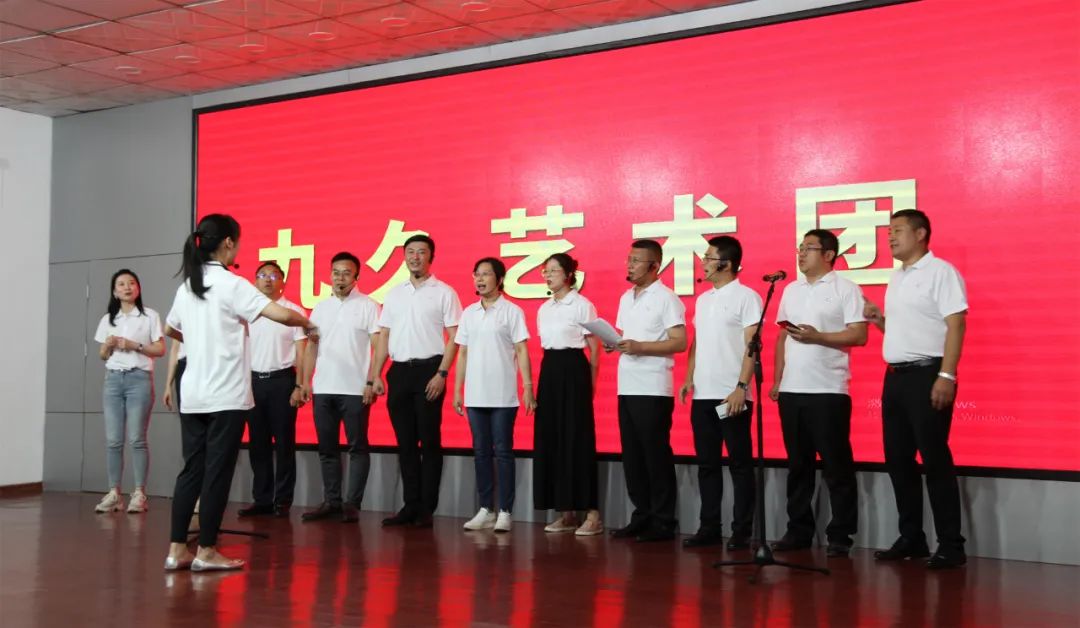 “九久藝術(shù)團(tuán)”采用新穎的舞臺(tái)劇形式,給大家?guī)?lái)了《我和我的祖國(guó)》、毛主席詞《詠梅》改編歌朗誦、《青春奮斗曲》大合唱等多個(gè)節(jié)目。獨(dú)唱、對(duì)唱、朗誦、合唱……一個(gè)個(gè)節(jié)目精彩紛呈,現(xiàn)場(chǎng)贏得大家一陣陣的笑聲、掌聲、喝彩聲。